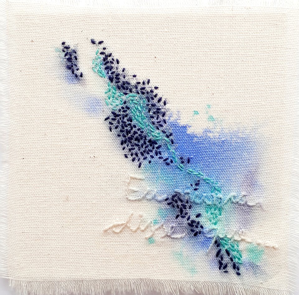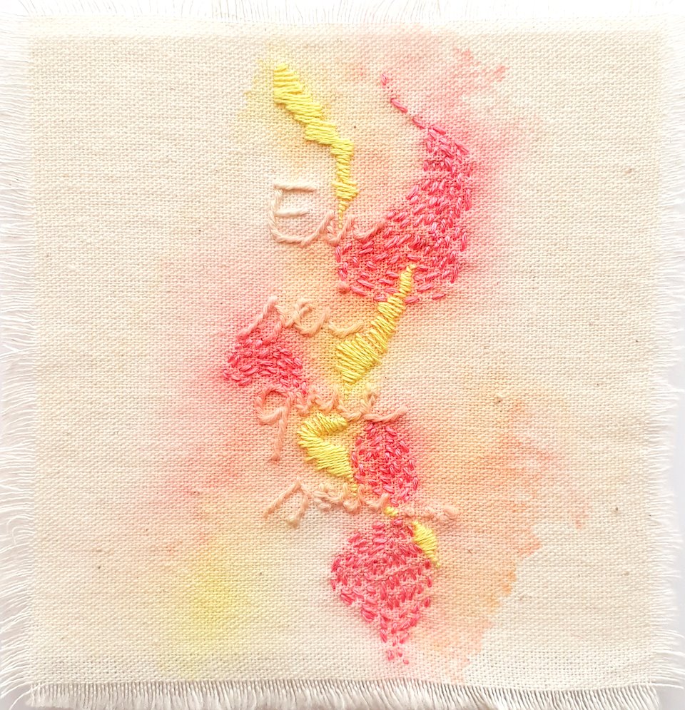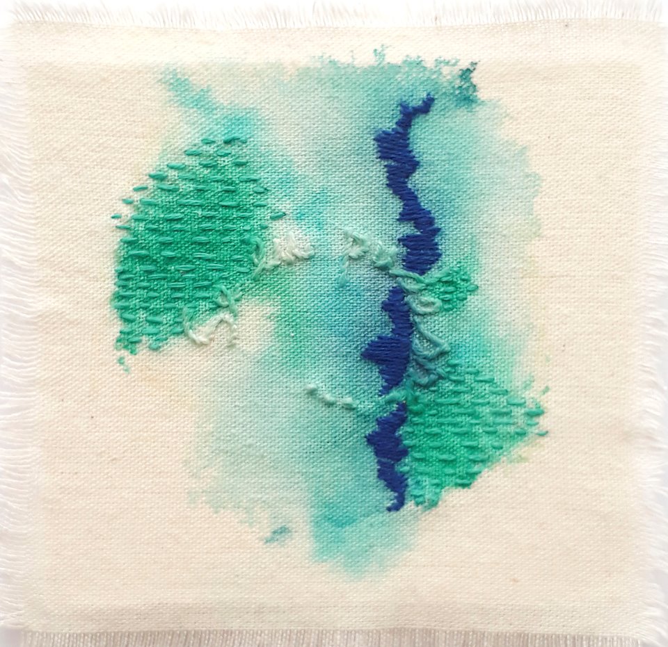 Nesta série – meu trabalho de conclusão do curso de Artes Plásticas na Panamericana Escola de Arte e Design em 2017 –, pequenos pedaços de tecido de algodão minuciosamente manchados com aquarela e bordados a mão convidam para um diálogo interior. Que segredos carregamos escondidos ou protegidos em nossos emaranhados internos?