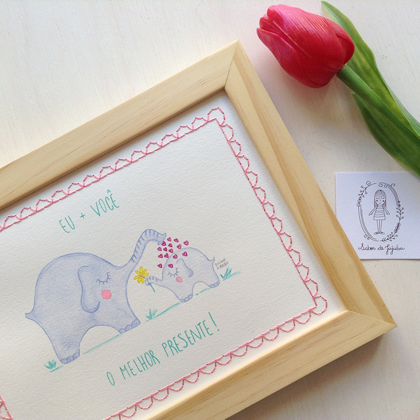 Com o kit digital, além deste cartão personalizado, você também pode produzir um bordado em bastidor (passo a passo aqui) e uma ilustração com moldura bordada em papel.